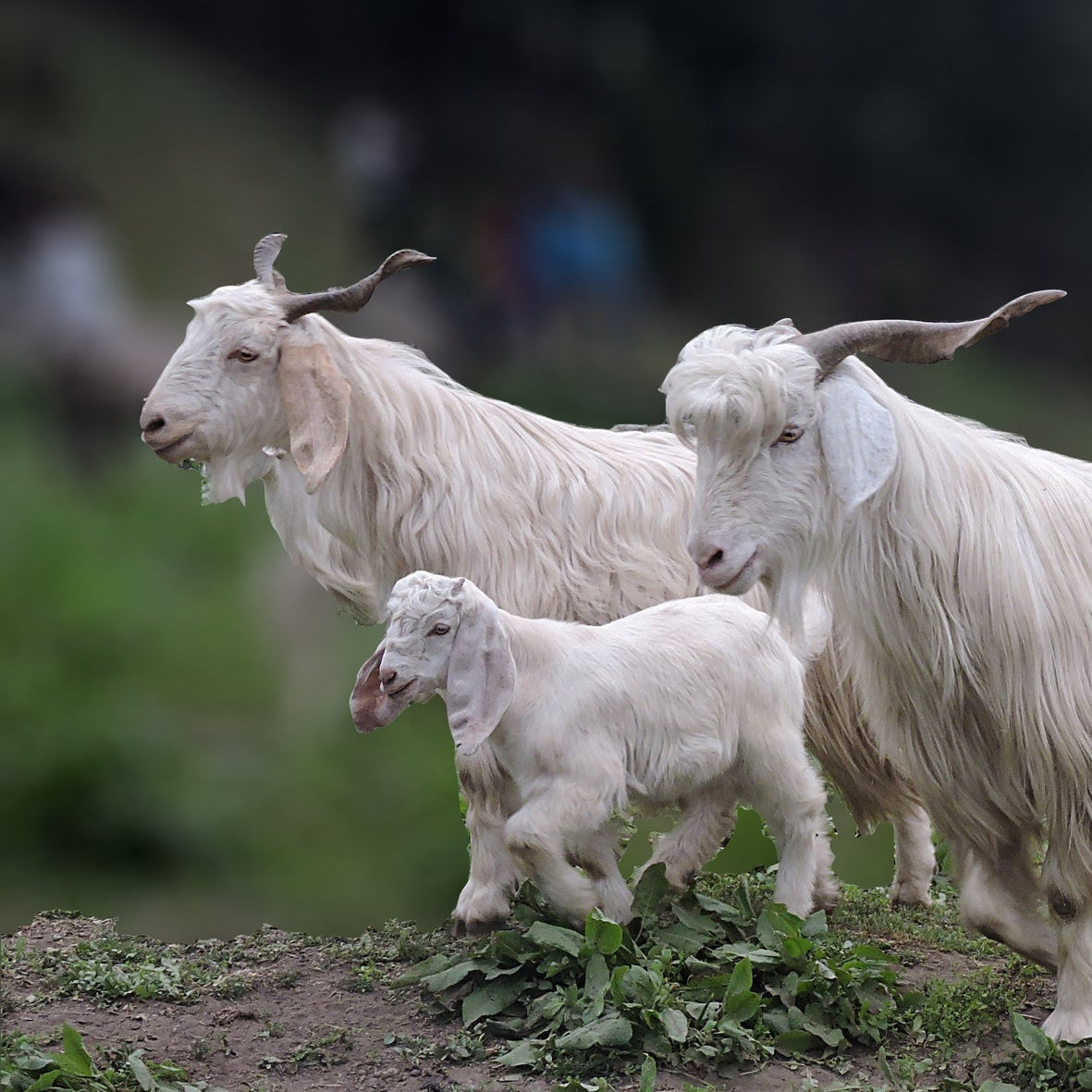 These goats are commonly found in Mongolia, Tibet, Northern India, Afghanistan and southwest China. They can withstand temperatures as low as -30C°, thanks to their insulating undercoat. These goats are among the most expensive animals in the world. It takes about four to eight goats to produce enough cashmere for an adult sweater. In comparison, one sheep can produce enough wool for four wool jumpers.