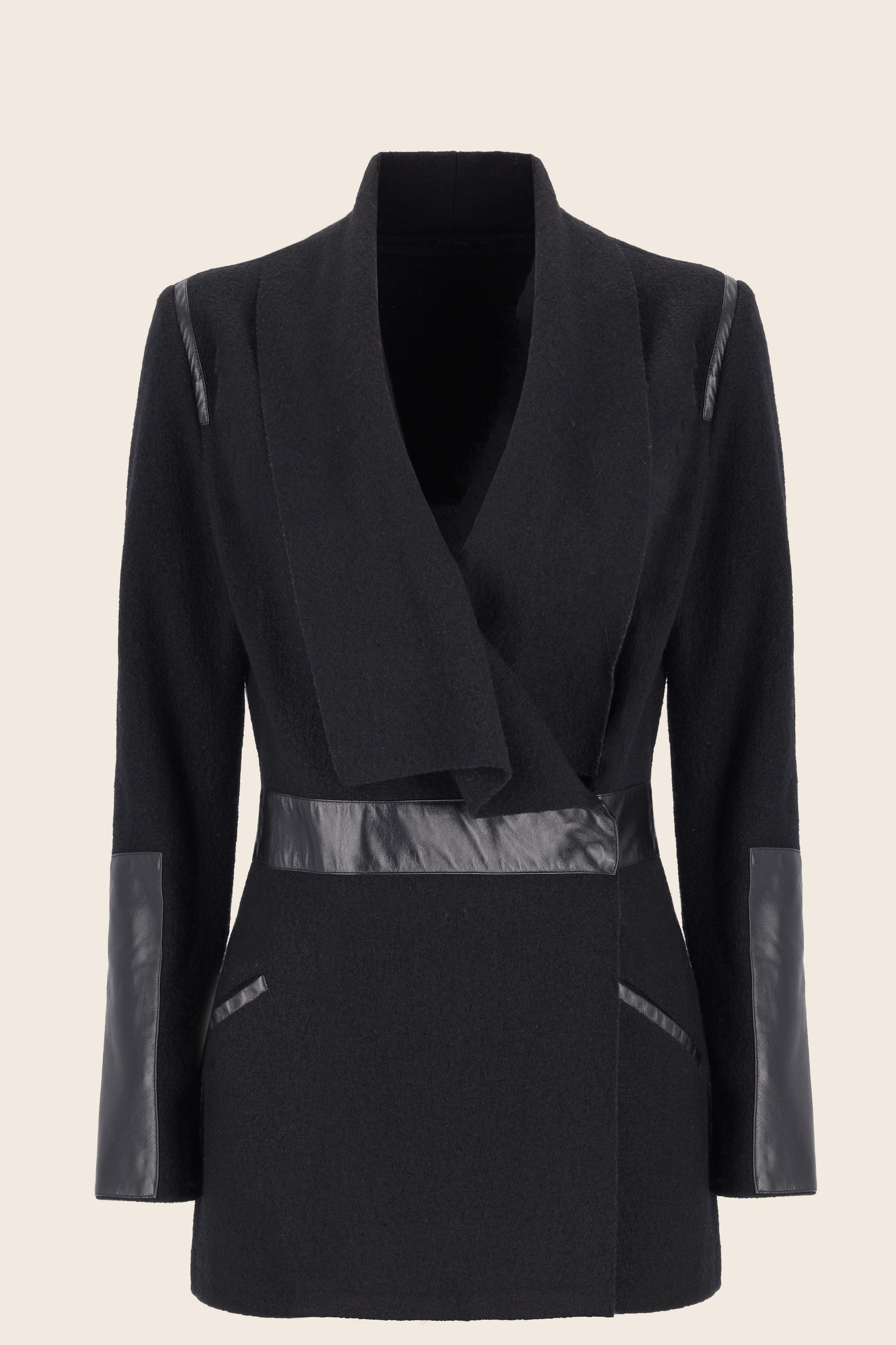 We love: The perfect blend of classic wool and edgy leather details in this blazer combo!