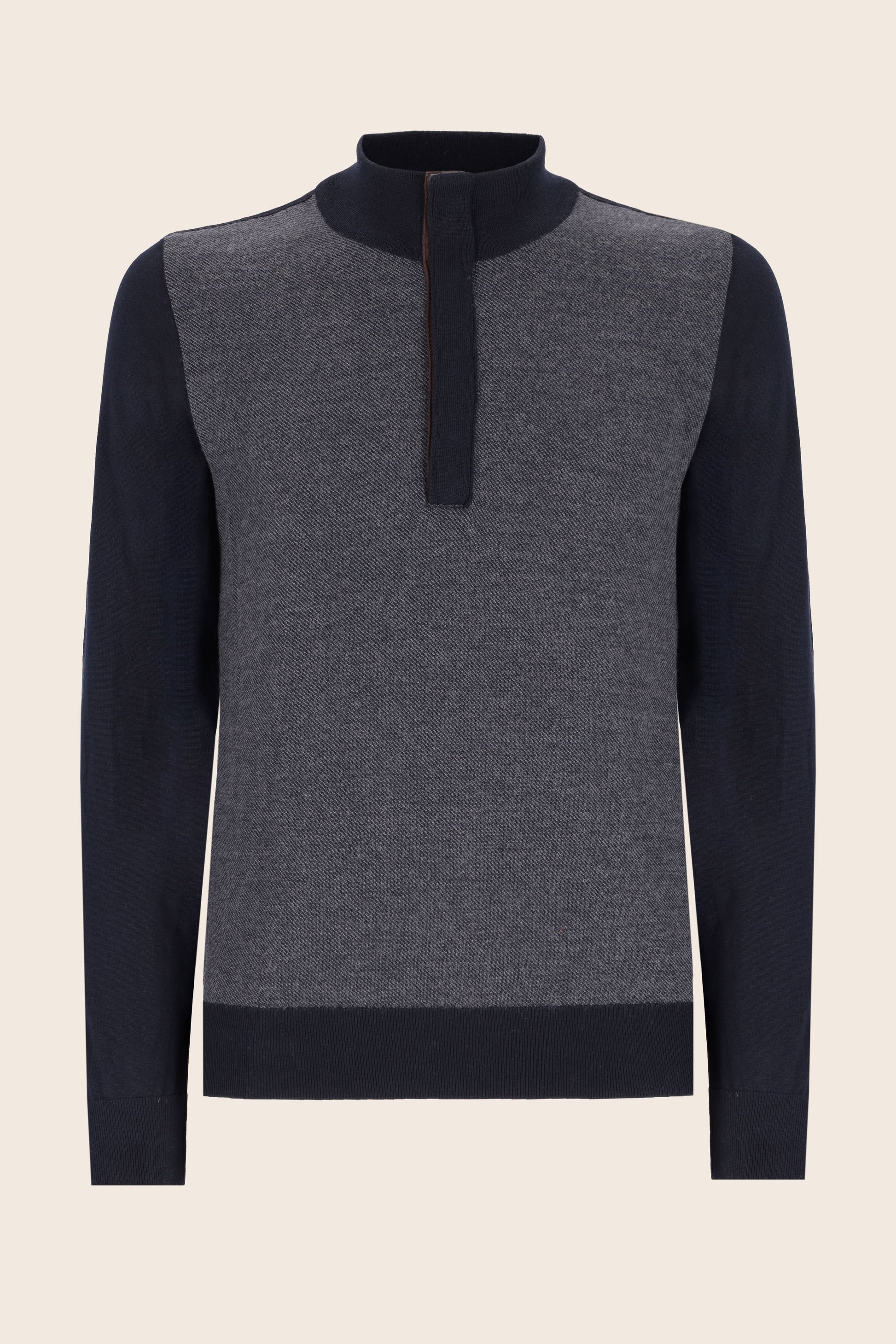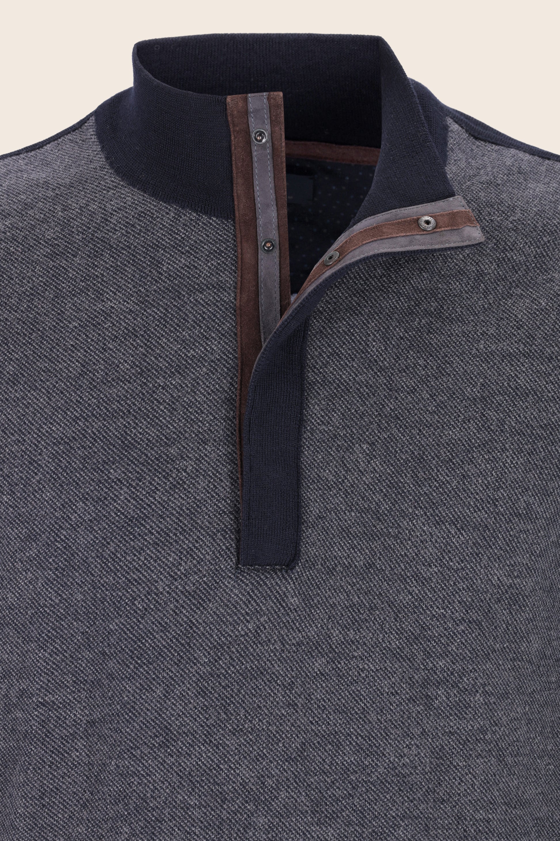 We love: The combination of grey mélange and navy, with the refined detail of Alcantara leather on the button placket!
